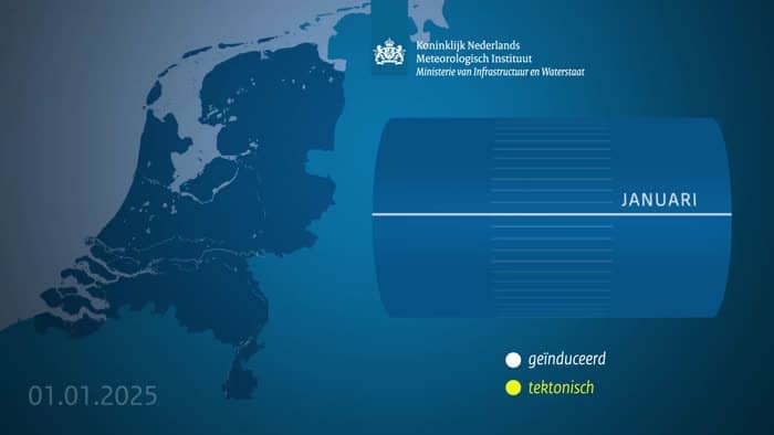 In 2025 zijn er Nederland 59 aardbevingen opgetreden. Daarvan waren er 35 geïnduceerde en 24 natuurlijke aardbevingen. Het totaal aantal aardbevingen is hoger dan in 2024, toen waren het er 47. De meeste geïnduceerde aardbevingen vonden plaats in het Groningenveld, 31 in totaal. De zwaarste aardbeving was bij Zeerijp op 14 november met een magnitude van 3,4. Dit was de op twee na zwaarste aardbeving in het Groningenveld.