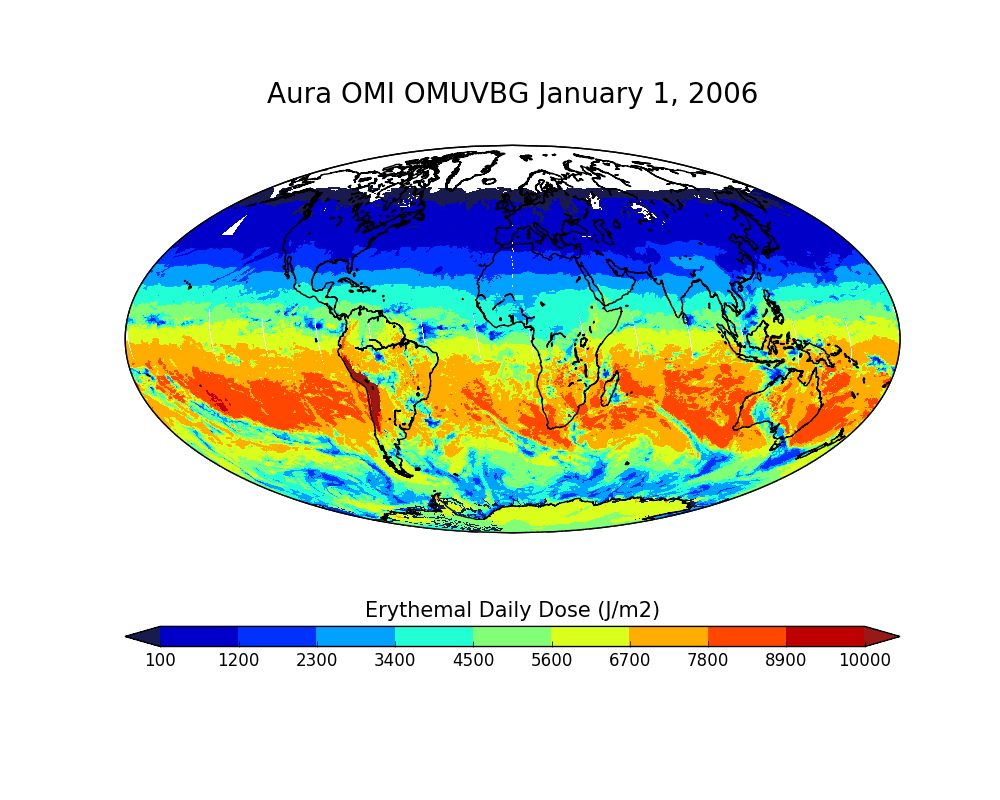 - Images of level 2 OMDOAO3 total ozone column amounts.